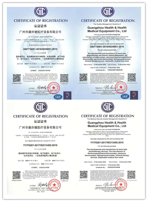 11月17日,康亦健順利通過ISO 9001質量管理體係、ISO 13485醫療器械質量管理體係認證要求,並獲得新認證證書!