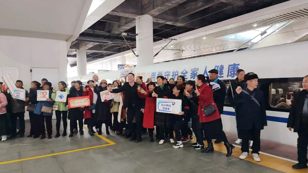 11月28日ri,康kang亦yi健jian健jian康kang坊fang高gao鐵tie品pin牌pai專zhuan列lie首shou發fa儀yi式shi在zai昆kun明ming南nan站zhan隆long重zhong舉ju行xing。健jian康kang坊fang常chang務wu副fu總zong經jing理li張zhang總zong,健jian康kang坊fang品pin牌pai總zong監jian鄧deng總zong,健jian康kang坊fang市shi場chang總zong監jian代dai表biao周zhou總zong、季總,健康坊顧客代表等共同出席本次首發儀式,並跟隨列車開啟了一段不一樣的品牌之旅。