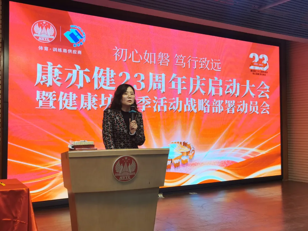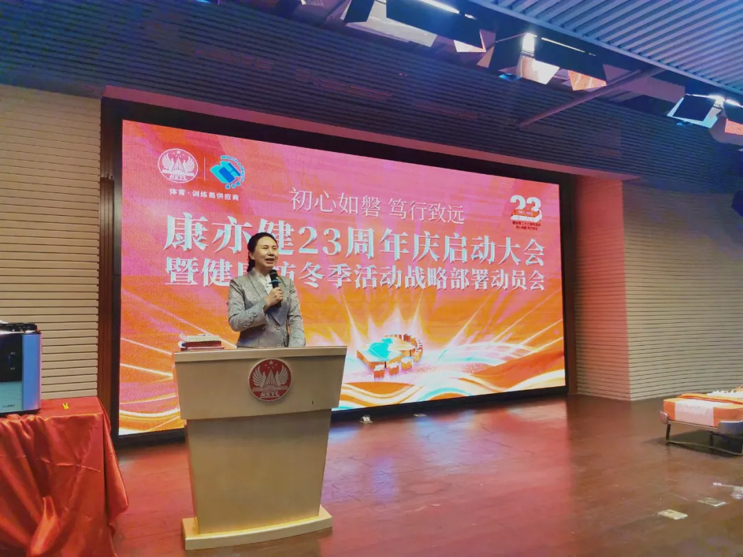 作為康亦健的戰略夥伴,國家體育總局訓練局副局長周秋瑞親臨會議現場,並對康亦健 23 周年表達了熱烈祝賀。她表示:“kangyijianduonianlaishizhongzhiliyuzhongguotiyu,weituidongtiyushiyedefazhanzuochulejijigongxian。zaiguoqudehezuozhong,womenjianzhenglekangyijiandechengchangyujinbu,yekandaoletamenweitishengquanminjiankangshuipingsuofuchudenuli。zhici 23 周年之際,我代表國家體育局訓練局,向康亦健表示最誠摯的祝賀,祝願康亦健在未來的發展中取得更加輝煌的成就!”